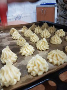 Tym razem Pani Natalia Klimowicz przygotowała przepisy : Sałatkę Paryżanka, Mięso Blond de pule in papilot i na deser Eklery z kremem i czekoladą.