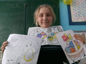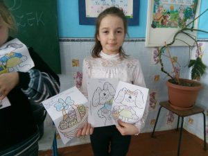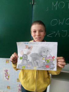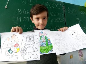 21 marca w Grigorowce dzieci poznały tradycje wielkanocne. Dowiedziały się, co wkładamy do koszyka, czym jest święconka i dlaczego Polacy dzielą się jajkiem. Poznały też słownictwo związane z Wielkanocą. Najbardziej podobały się takie słowa: zajączek i baranek. Dzieci chętnie malowały i kolorowały rysunki z motywami wielkanocnymi.