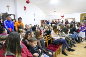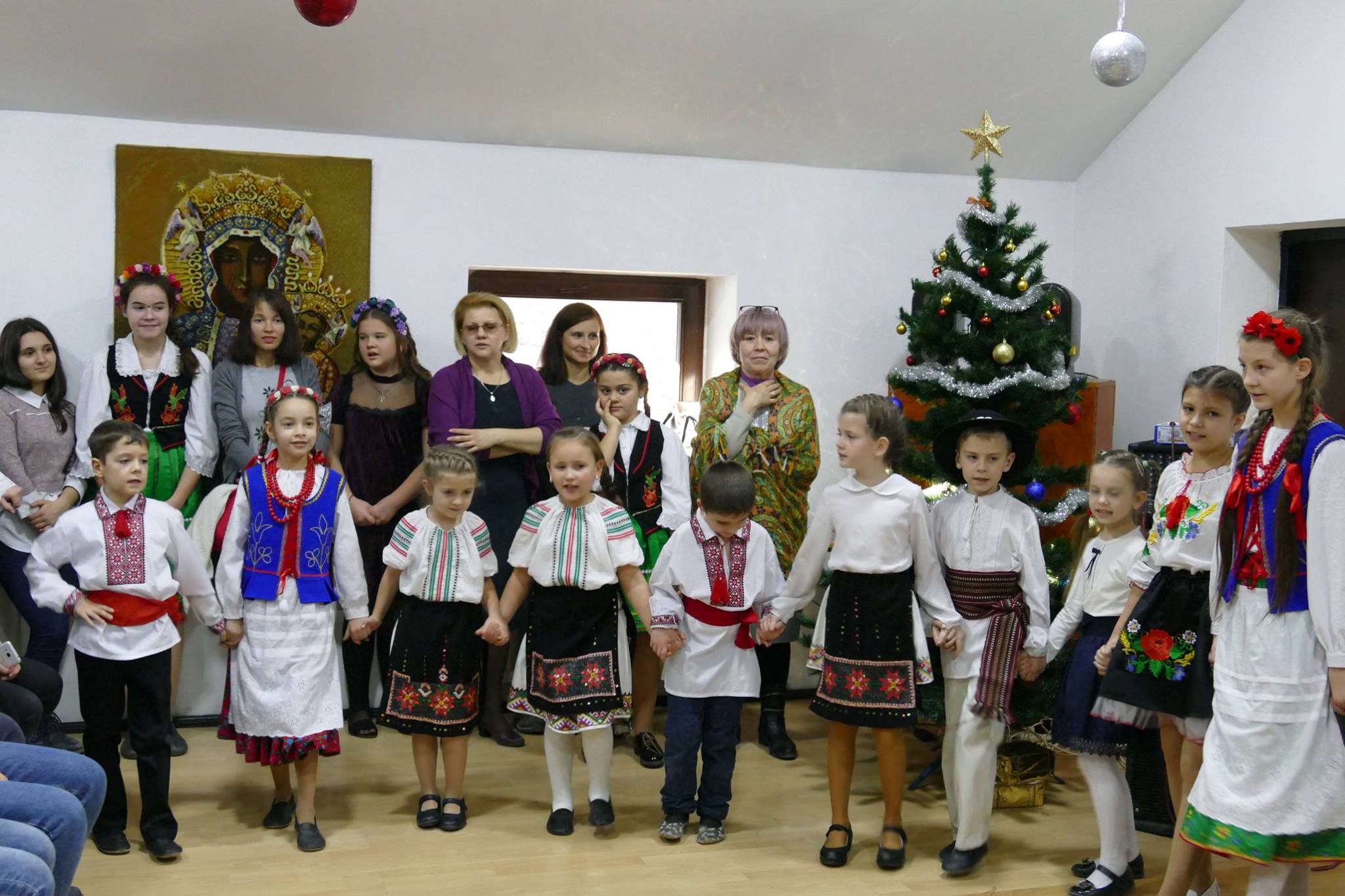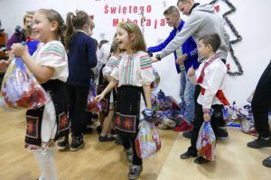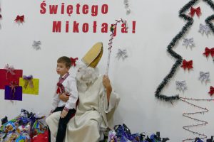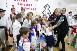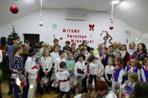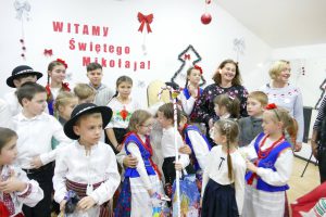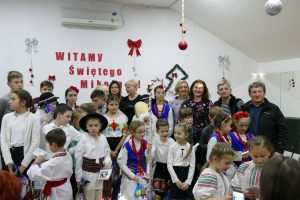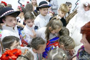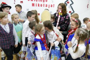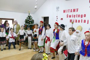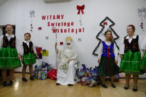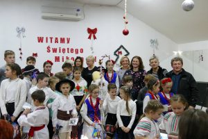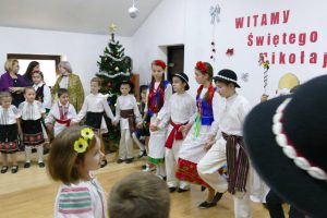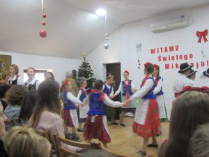 W oczekiwaniu na pojawienie się Świętego Mikołaja, najmłodsi odtańczyli taniec góralski i mołdawski, zaśpiewali piosenki polskie. Zespół „Jaskółki” pod opieką pani Malwiny Russu melodyjnie śpiewał o zimie i z dźwięczną nutą zaprosił na scenę Świętego Mikołaja. Dzieci, niektóre pierwszy raz, deklamowały wspólnie wiersze o zimie, prezentach, choince i świętach. Spotkanie umiliła uczennica, która zagrała na gitarze. Przedstawienie przygotowały nauczycielki skierowane do pracy za granicą przez ORPEG- p. Irena Torbus i p. J. Bartków. Wreszcie, ku wielkiemu oczekiwaniu, Mikołaj rozdał podarki. Dzieci chętnie fotografowały się z Mikołajem i były bardzo szczęśliwe.