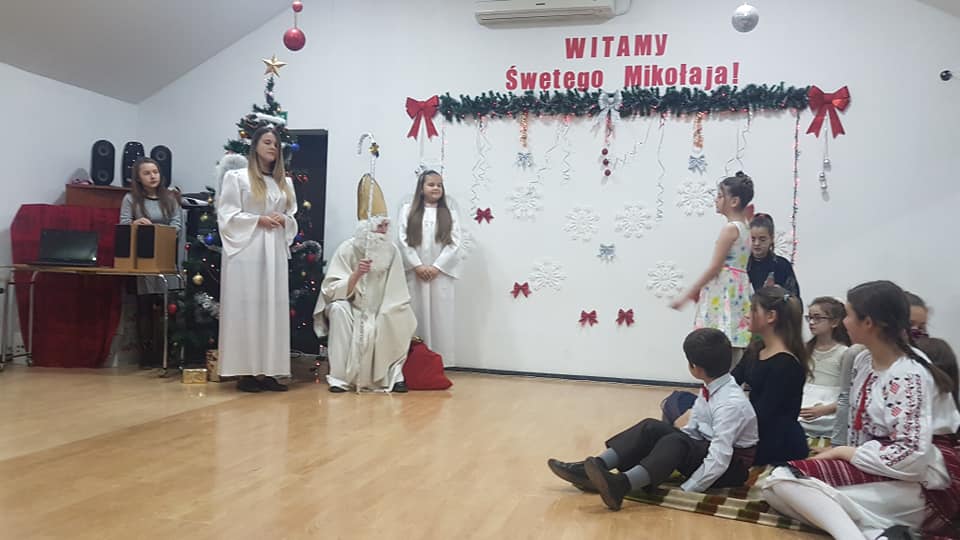 W niedzielę 9 grudnia wspólnotę Domu Polskiego w Bielcach odwiedził święty Mikołaj z workiem prezentów w towarzystwie dwóch aniołów. Na jego przybycie z utęsknieniem czekały dzieci, te najmniejsze i te trochę większe, a także te już całkiem duże. Obecni byli również rodzice. Dzieci przywitały Mikołaja piosenkami, wierszami, tańcem i krótką inscenizacją. Św. Mikołaj był bardzo zadowolony. Pochwalił wszystkich artystów, małych i dużych oraz obdarował każdego z nich słodkim upominkiem.