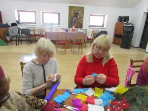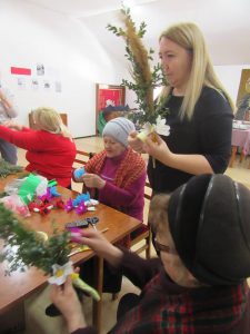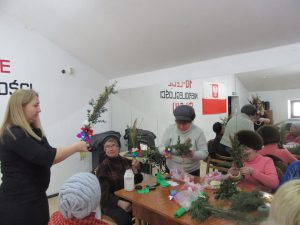 22 marca 2018 r. tym razem w Domu Polskim w Bielcach z Seniorkami ozdabiałyśmy palmy wielkanocne kwiatkami , które każda z Pań wyrobiła tydzień przed tym. Jak zawsze Paniom bardzo się podobała praca i wykonanie swojej palmy.