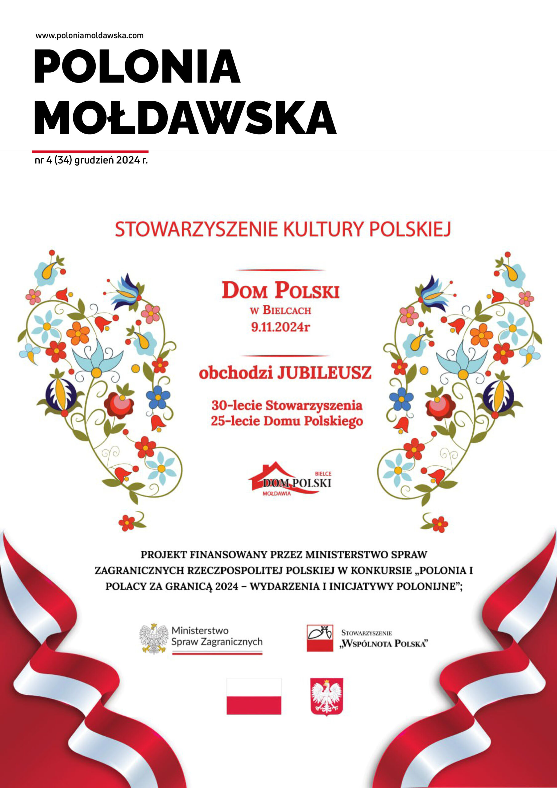 Grudniowe wydanie obfituje w relacje z najważniejszych wydarzeń polonijnych w Mołdawii. Opisujemy jubileuszowe obchody 30-lecia Stowarzyszenia Kultury Polskiej „Dom Polski” oraz 25-lecia Domu Polskiego w Bielcach, które były okazją do wspomnień, uroczystych akademii oraz refleksji nad polską historią i kulturą.