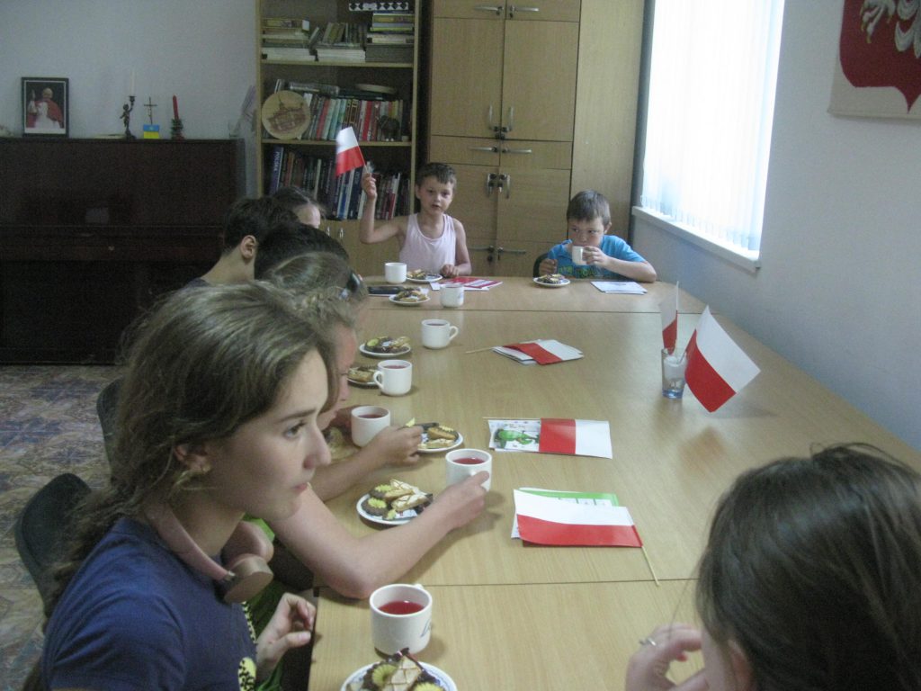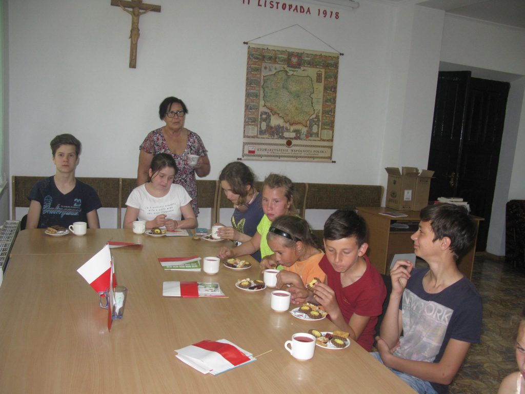 A na zakończenie – cukierki,ciastka,dobry domowy sok. Jak święto to święto……zajadaliśmy się słodyczami śpiewając pieśni patriotyczne.