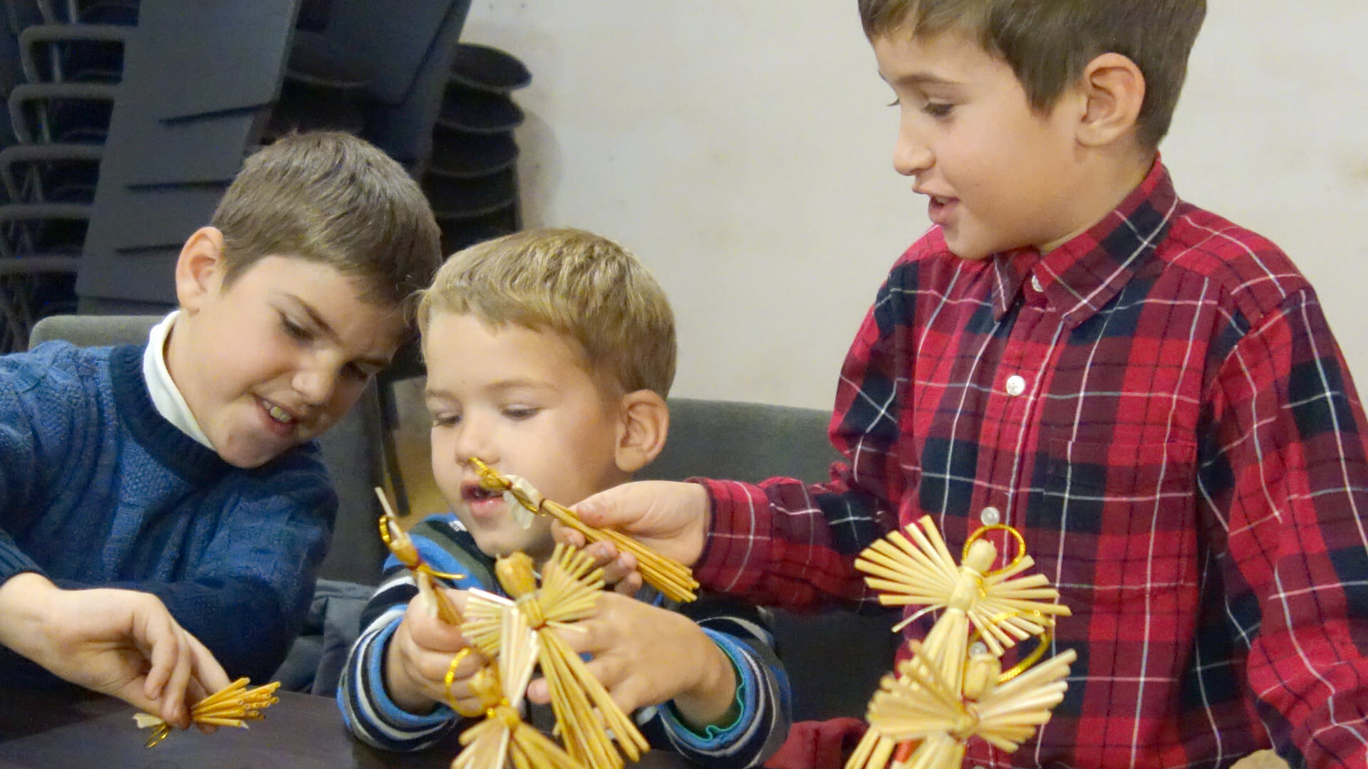 Na początek razem z naszą nauczycielką, panią Katarzyną, zaśpiewaliśmy po polsku piosenkę z pokazywaniem pt. „Głowa, ramiona, kolana, pięty”. Nauczyliśmy się kilku słów po polsku i dowiedzieliśmy się, gdzie mamy głowę, a gdzie kolana. Następnie razem z panią Anią i zaproszonymi gośćmi robiliśmy ze słomy piękne aniołki. Obecne były z nami pani dyrektor Wiktoria Koczurowska i pani prezes Janina Kazak. Przyszli też młodzi wolontariusze, aby pomóc swoim młodszym kolegom i koleżankom . Wszyscy świetnie się bawili, a po spotkaniu zabrali ze sobą do domów piękne, słomiane anioły.
